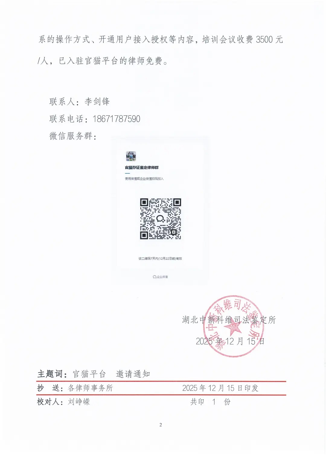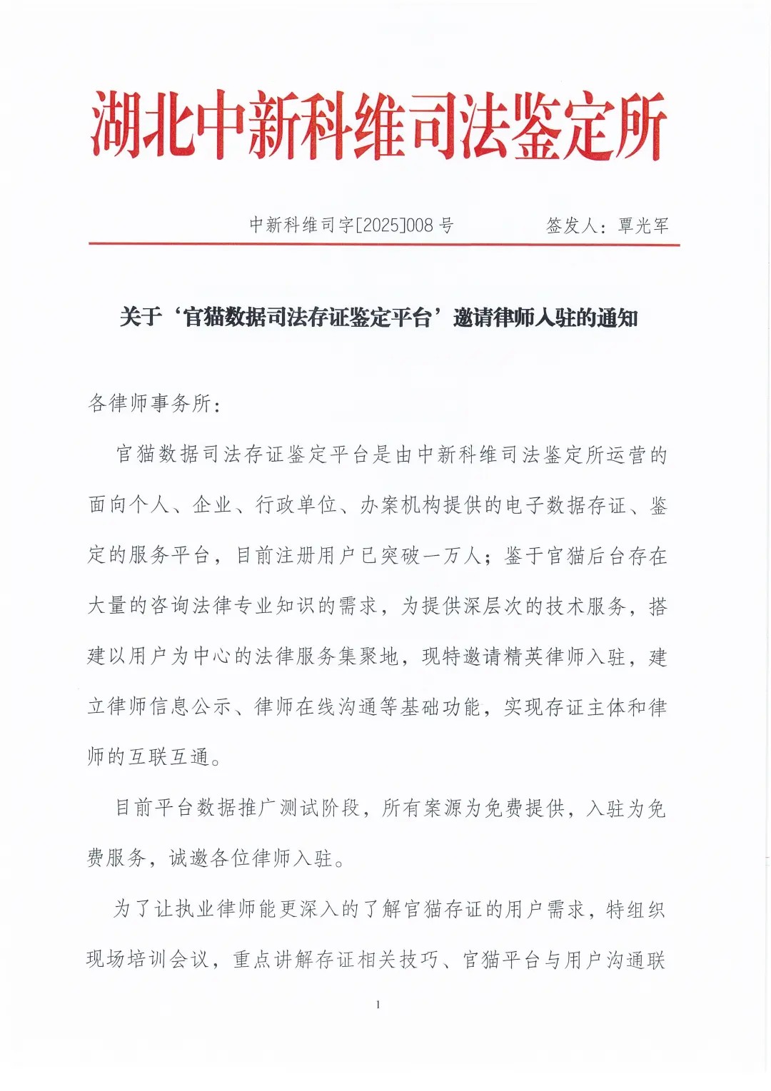 关于“官猫数据司法存证鉴定平台”邀请律师入驻的通知